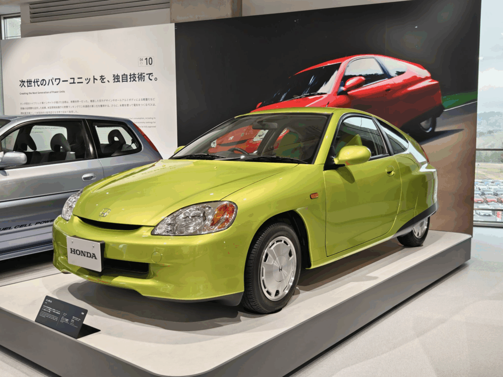 インサイトは製造台数が少ないながら、ホンダのマイルストーン的な車ということもあり、ホンダが運営している栃木県にある博物館、ホンダコレクションホールにも展示されています。展示されているのは前期型のシトラスイエロー。当たり前ですが状態は良いです。隣にはホンダ初のFCEV車、ホンダFCVが展示してあります。